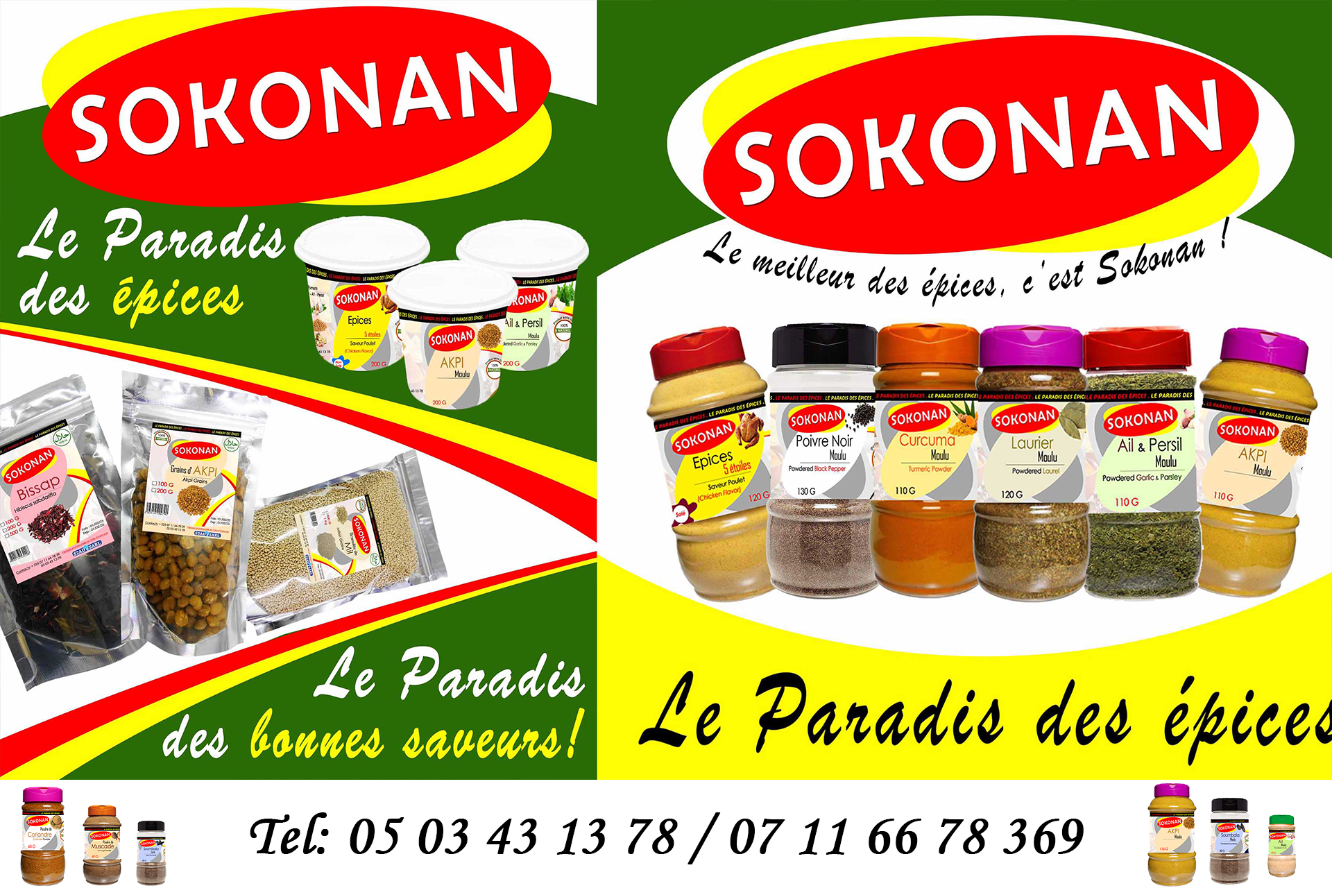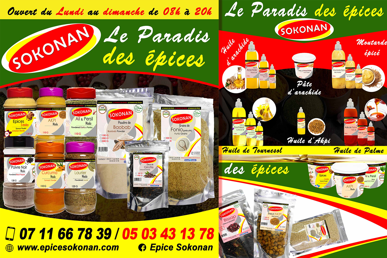 SOKONAN est une marque déposée de la société S2AD Sarl qui compte en son sein d’autres marques telles que Massa Musso. SOKONAN est spécialisée dans la fabrication et le conditionnement en bouteilles ou en pots, de plusieurs épices en poudre, en grains, en pâtes et en huiles. Les produits de la marque SOKONAN sont uniques de par leur goût. SOKONAN, c’est une saveur inégalée pour vos différents assaisonnements (sauces, grillades, bouillies, et….) Sa qualité de production et sa bonne conservation feront que vous ne pourriez plus vous passer des produits SOKONAN. Disponibles en divers grammages et quantités, les produits SOKONAN sont disponibles pour toutes bourses et usages culinaires. Les Produits SOKONAN sont recommandés pour toutes personnes ou restaurateurs avides de satisfaire sa clientèle, en leur proposant des mets à la saveur exquise et qui sauront ravir leurs papilles. SOKONAN, c’est vraiment le paradis des Epices !